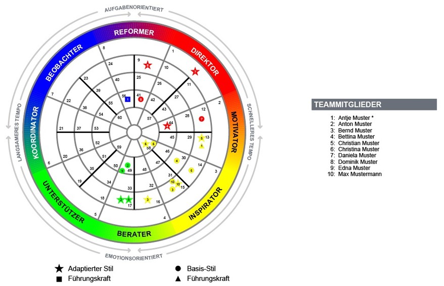 Stellen Sie Ihr Team mit der Insights MDI®-Analyse auf den Prüfstand und visualisieren Sie die Ergebnisse anschließend mit der Success Insights Team-Analyse. Hierbei wird die Konstellation des gesamten Teams auf dem Insights-Rad abgebildet, damit Sie Verbesserungspotenziale in der Teamleistung erkennen und angehen können. So wird es Ihnen leichter fallen eine Arbeitsatmosphäre zu schaffen, in der die Teammitglieder ihre Leistung voll ausschöpfen können.